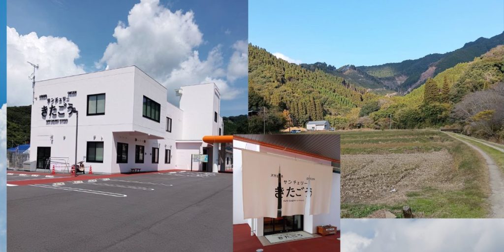 サンチェリーきたごうは、2024年12月21日にリニューアルオープンした新しい温泉施設です。北郷温泉街の一つで周りは山に囲まれておりいくつかの温泉施設が集まっています。